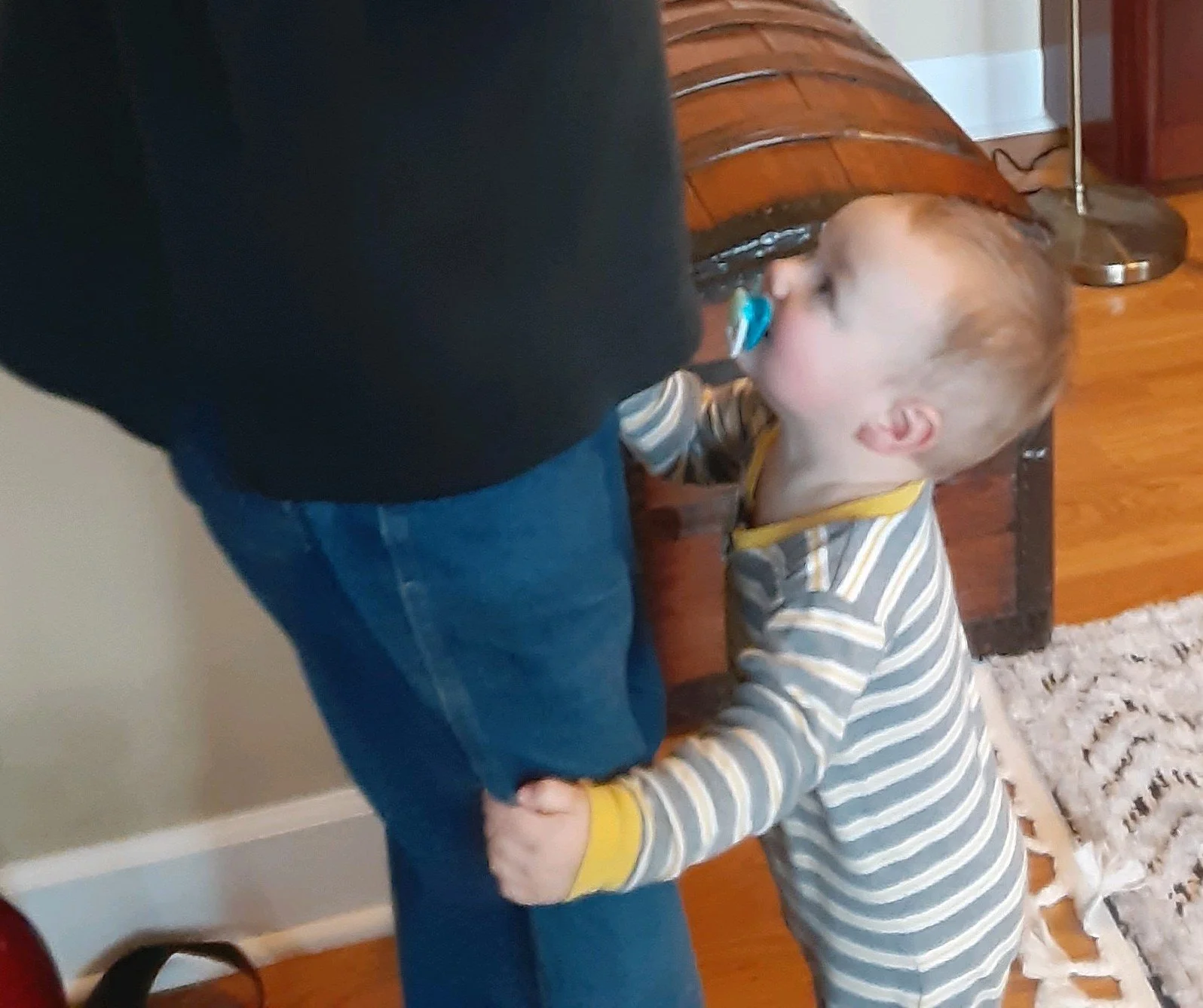 Little Jack is still fascinated with fans going round and round. When he sees me he makes a beeline for my legs and grabs hold. We have a bond that can only be explained as some kind of kindred spirit thing. His dad and I had that same kind of bond. It’s an Irish thing.