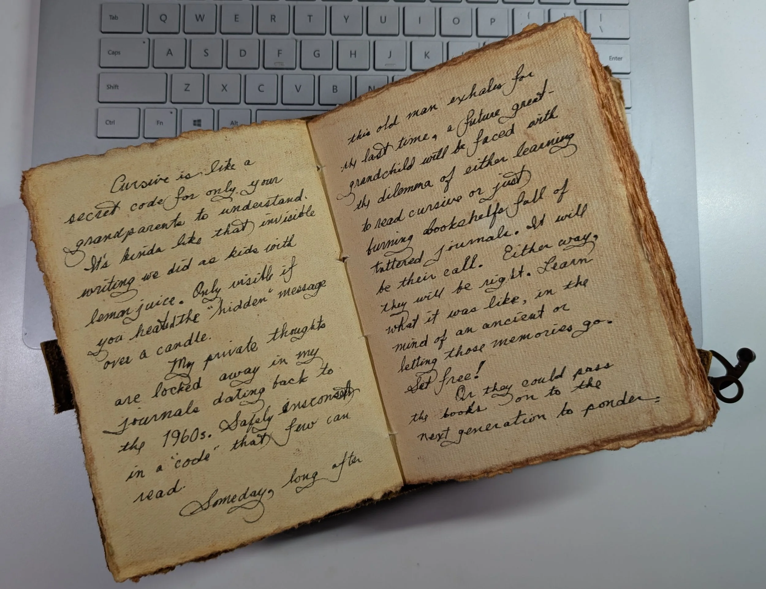 Lake House - Cursive is like a secret code for only your grandparents to understand. It’s kinda like that invisible writing we did as kids with lemon juice. Only visible if you heat the “hidden” message over a candle.